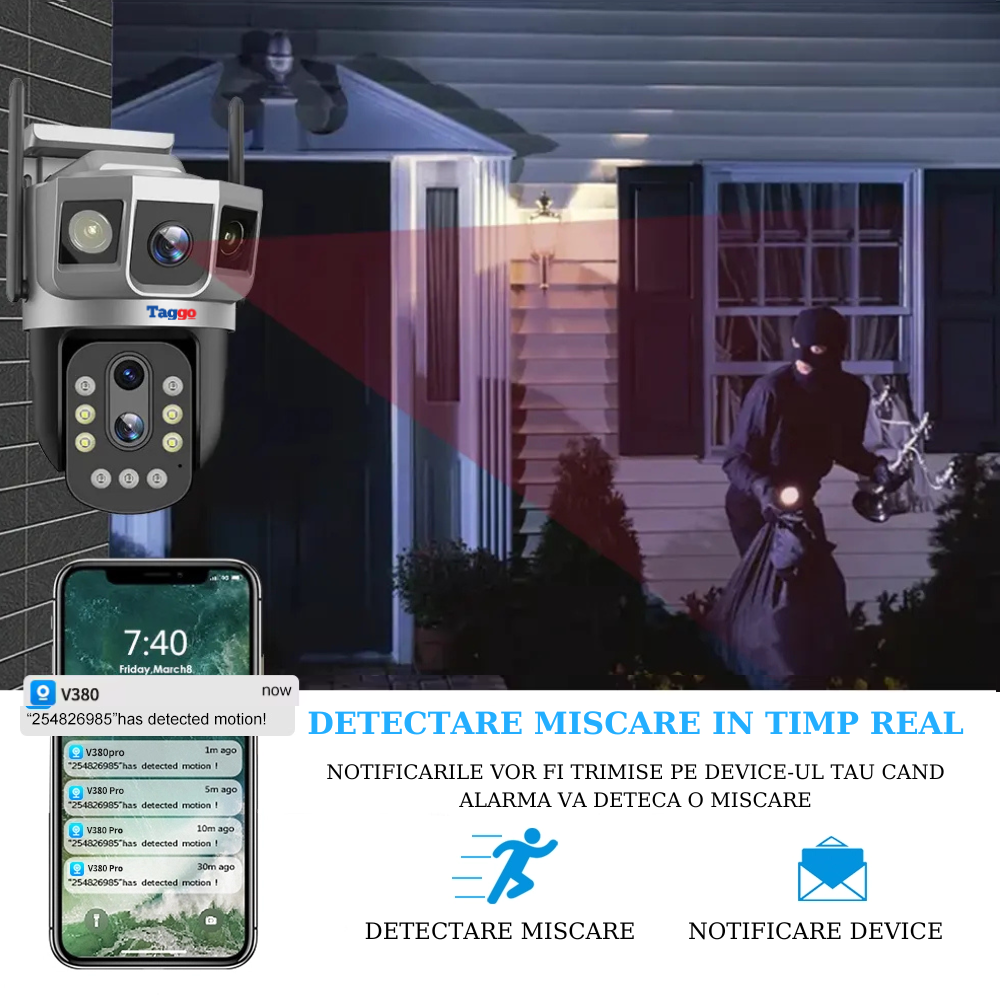 - Control facil prin aplicația V380 PRO.